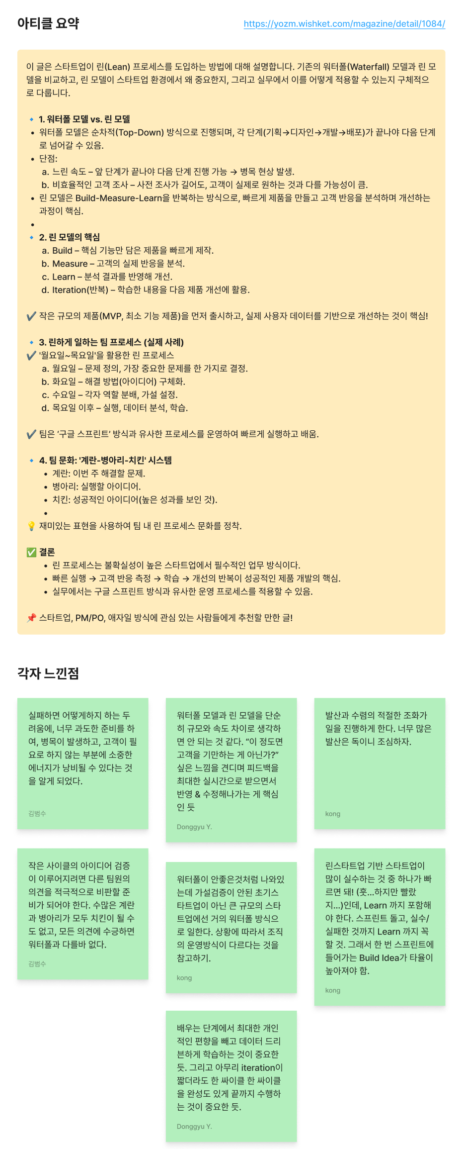 💡 재미있는 표현을 사용하여 팀 내 린 프로세스 문화를 정착.
