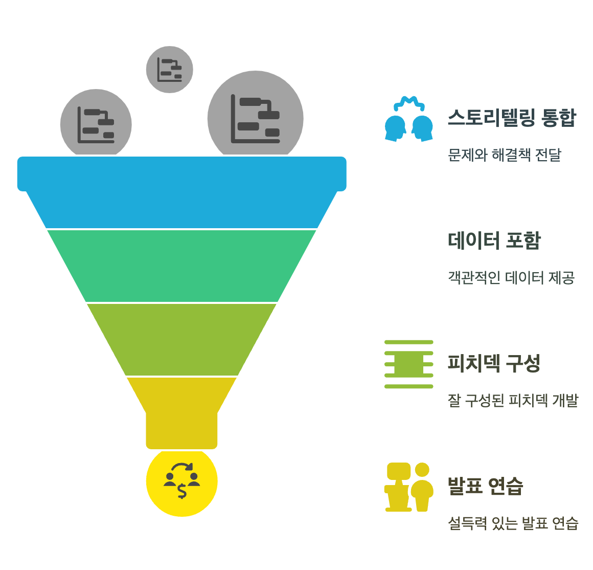 - 스토리텔링 활용: 문제 → 해결책 → 성장 가능성 순으로 설득력 높이기