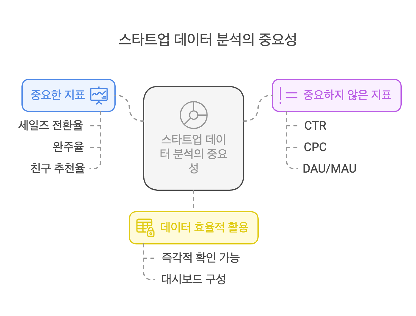 - 스타트업 초기에는 모든 인력이 바쁘므로, 데이터 분석에 과도한 시간 투자 금지