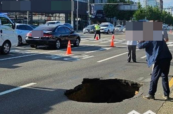 즉시 해당 지역을 피하고, 119 또는 지자체에 신고하세요. 도로 또는 보도 위에 움푹 꺼진 흔적이 있다면 절대 가까이 가지 마세요.