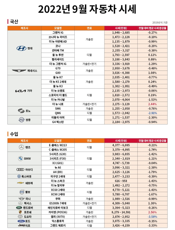 Q: 중고차시세표는 어디서 확인할 수 있나요?