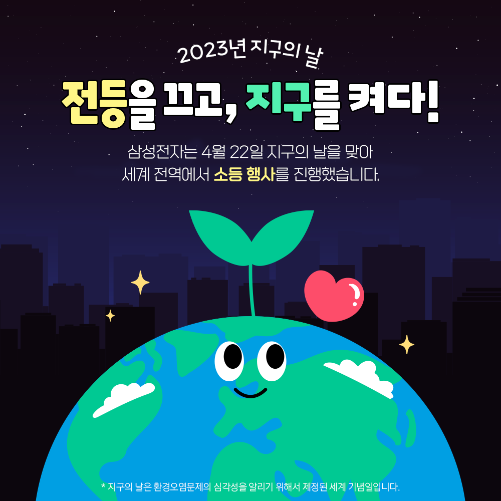 - 🕗 4월 22일 저녁 8시: “불을 끄고, 별을 켜요” 전국 소등 캠페인