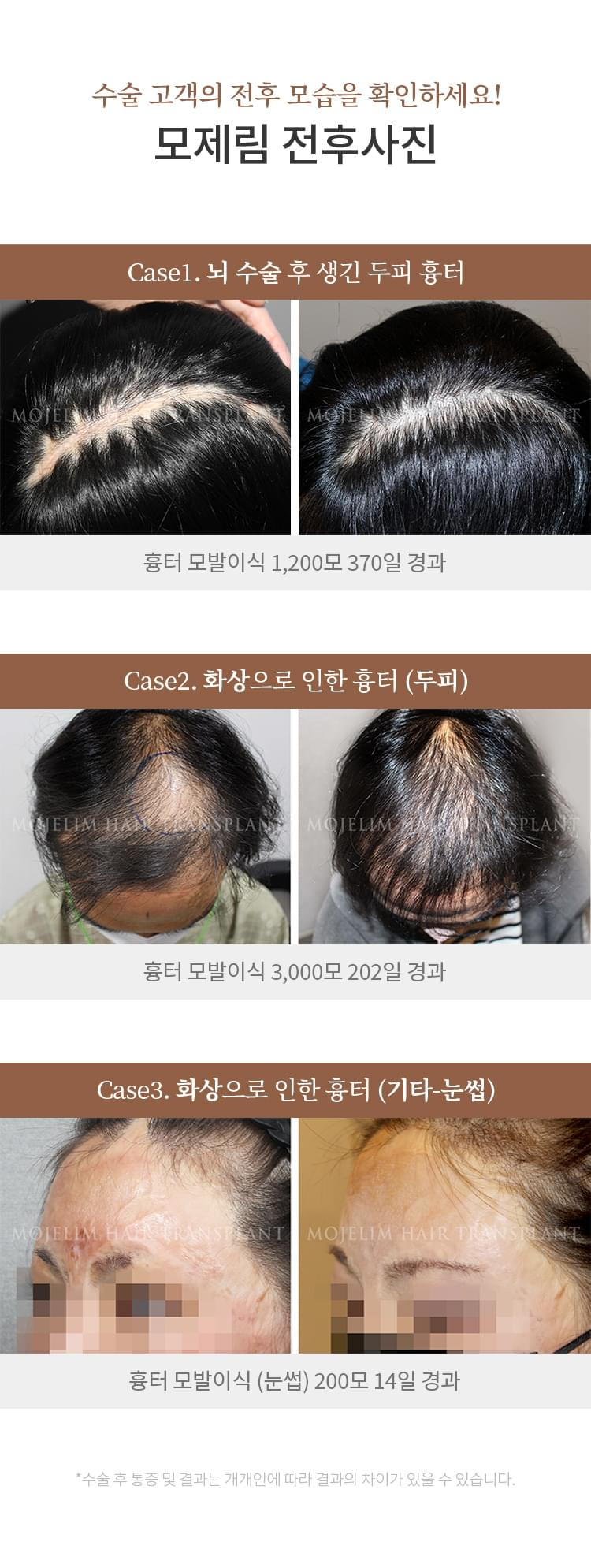- 두피의 흉터 조직 상태를 정확히 파악하고 적절한 방법을 선택해야 합니다.